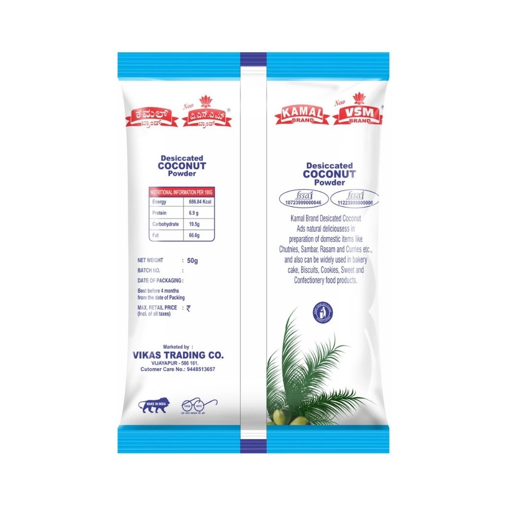 VSM Premium Coconut Powder | Desiccated Coconut Powder | Tropical Delight for Baking & Cooking | 50gm Pack